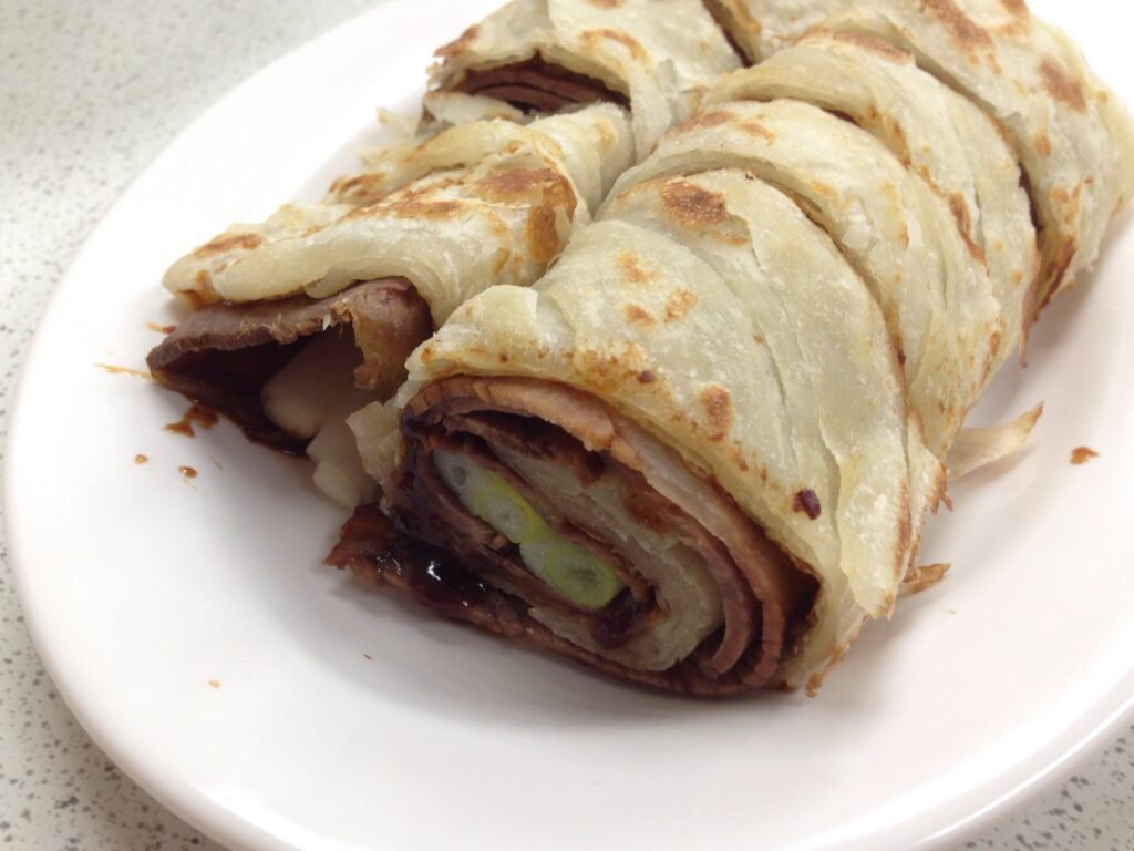 複数人で行くと、店員さんからサイドメニューの「斤餅包牛肉」も勧められます。130元。程よいタレの味付けでお肉もボリューミーで美味しいです。
